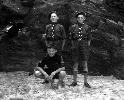 Par 1. Merlins at Newquay 1958. Raymond Pilley, John Wallace at the back, Dick Ainsworth front