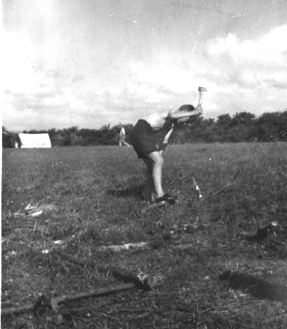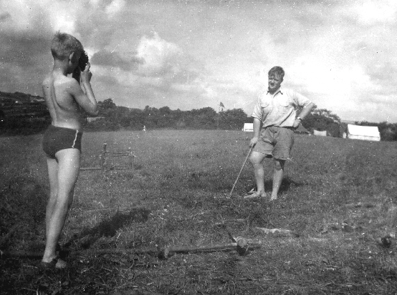 Par 3 Raymond Pilley (left) and Brian ('Slim') Wilkes. HQ tents in background